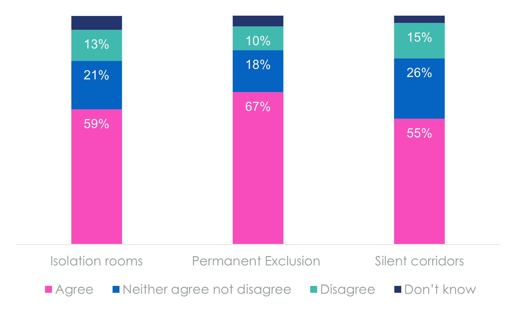 Parents in our survey also showed support for the use of permanent exclusion in schools, with 67% agreeing that they were sometimes necessary. This rises to 73% amongst baby boomer parents, compared to 61% amongst millennial parents.