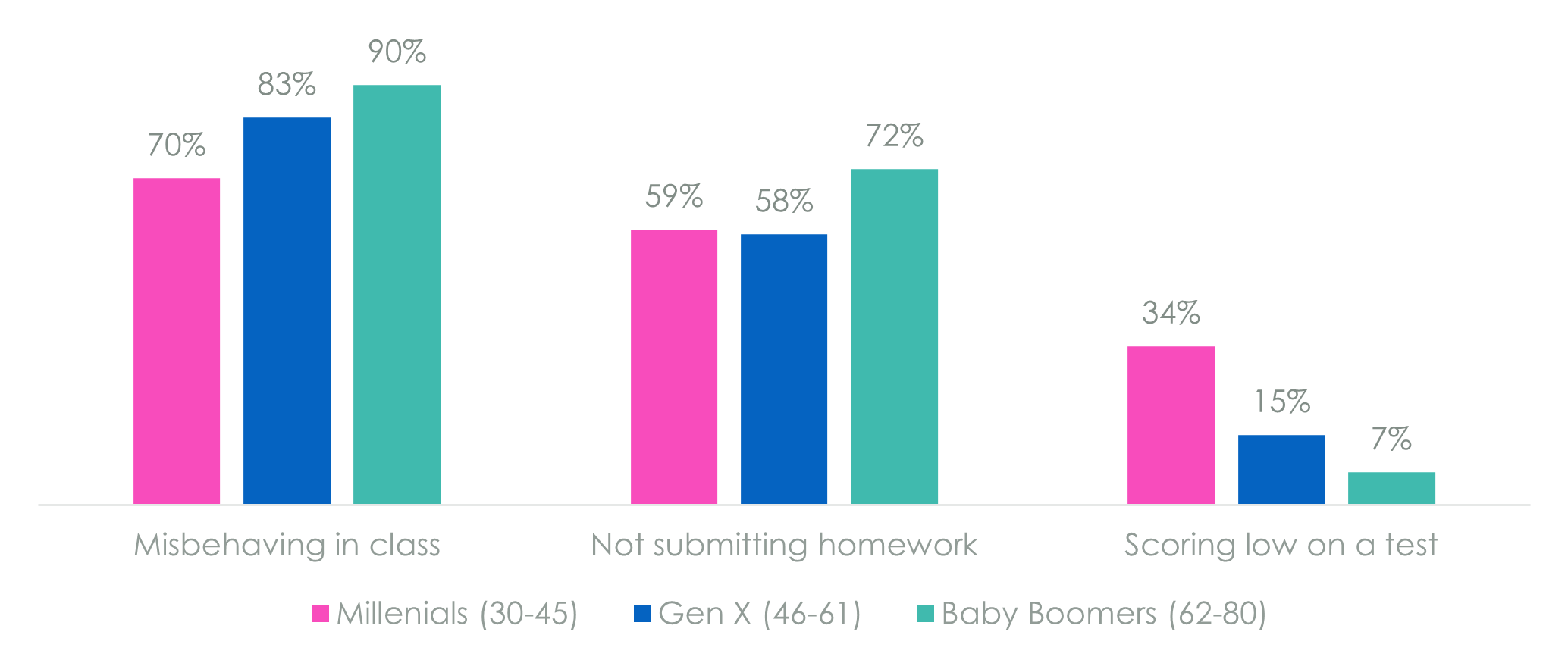 Only 70% of Millennial parents support sanctions for classroom misbehaviour, compared to 90% of Baby Boomers