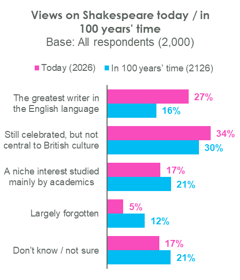 Brits predict Shakespeare will be less central to British culture in 100 years’ time